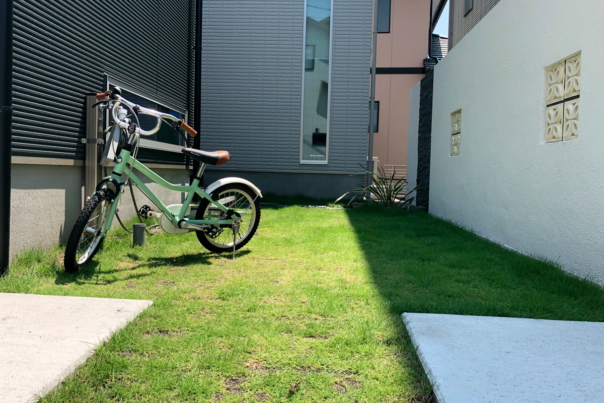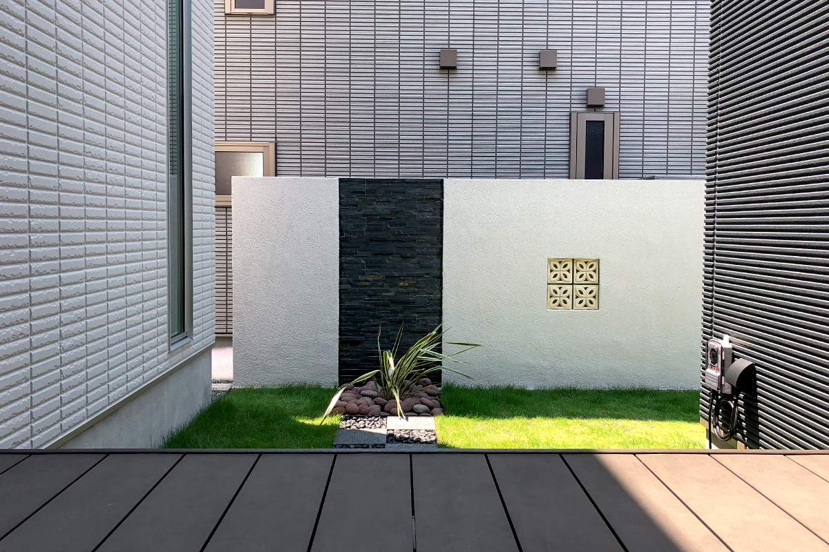 デッキの前には芝生が敷かれ、お子様の走り回る姿が浮かびます。